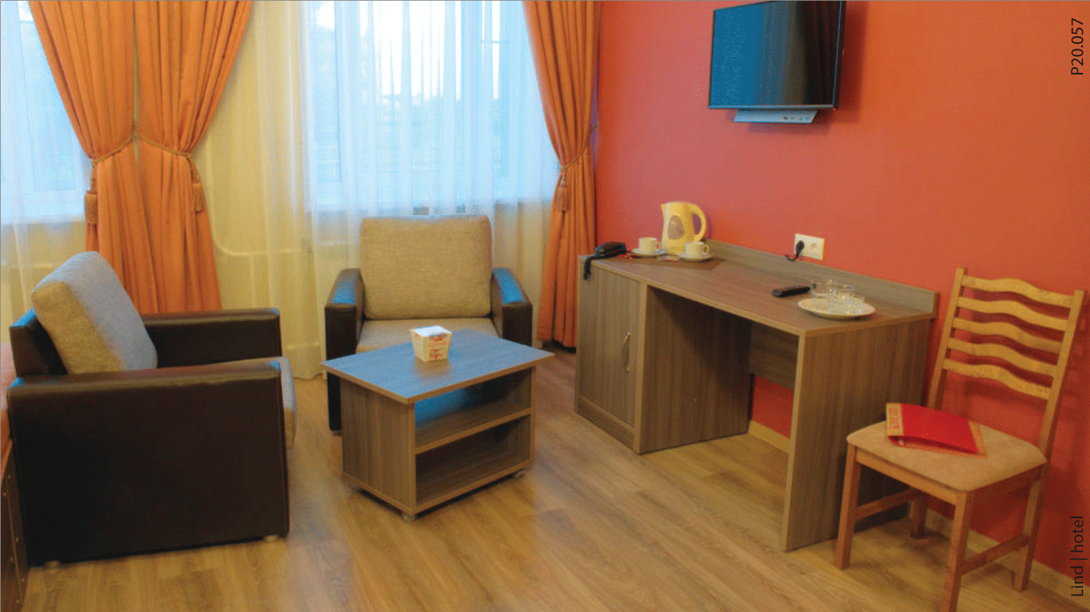 Набор мебели Lind | hotel предназначен для оборудования гостиничных номеров категорий стандарт / полу-люкс или 3*/ 4*. Так же эта мебель подходит для любых других учреждений с помещениями для временного проживания – общежитий, пансионатов, домов отдыха, оздоровительных центров, санаториев и детских лагерей.