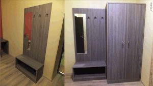 Специально для использования ниш и узких пространств, предусмотрено несколько вариантов мебели для прихожей, различающихся шириной. Кроме того, набор для прихожей может быть объединен с любым шкафом при помощи общей верхней крышки.